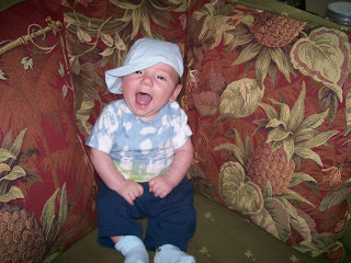 12 weeks stats: 11lbs, 15oz and 24 inches. What a big boy!! He is so much fun! He is starting to yell when he laughs! At first, I thought he was hurt...he's just playing! We're having a ball!